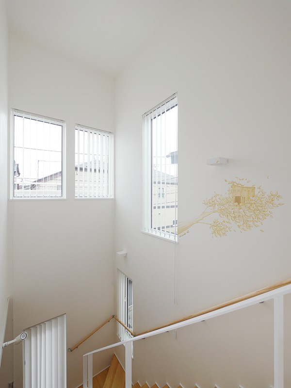 - オール電化、天井・壁を漆喰仕上げ、無垢パイン材の床、造作鉄骨階段、造作家具・建具(塗装仕上げ)、造作照明、バーチカルブラインド、ロールスクリーン、高級イタリア製照明器具(ルミナベッラ)採用